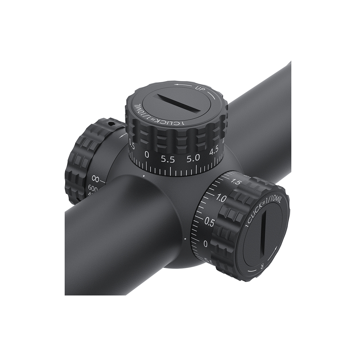 The VictOptics S4 3-12×40 SFP Riflescope is a locking turret scope, which avoids accidental movements of the turrets, thus better for outdoor use. The click value is 1/10MIL, with total 18MIL adjustment range.