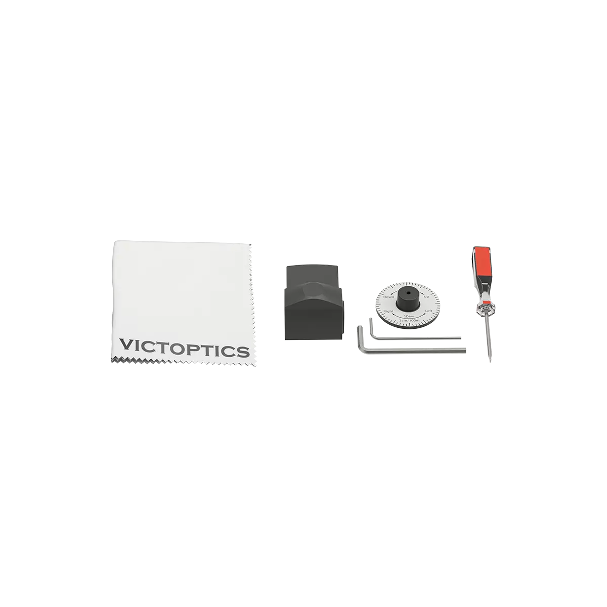 Package includes weaver mount, rubber lens cover, MOA dia plate, hex key, screwdriver and cleaning cloth, etc.